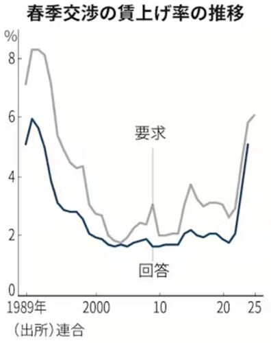 いわゆる「春闘」の話題が、今年はかなり盛り上がった? ようにも感じます。本日ご紹介するのはその皮切りのような記事です。 今さらながら、ではありますが、日経新聞より。 www.nikkei.com (会員限定記事となっております。ご了承ください) 2025年の春季…